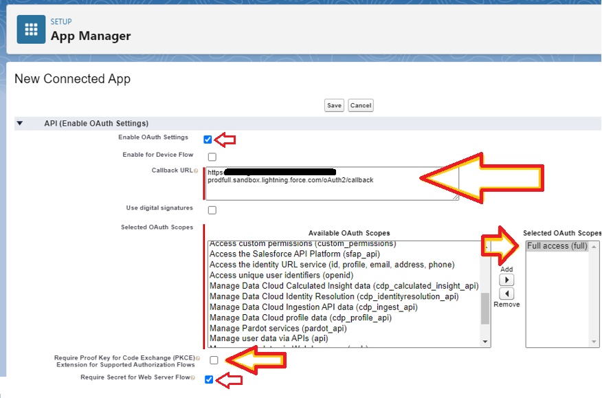 3. Complete the Basic information and enable the following API (Enable OAuth Settings)